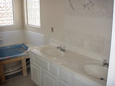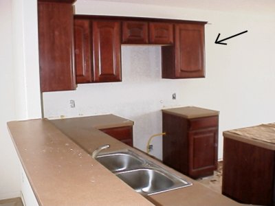 Keeping with a time honored Mexican tradition... The last cabinet is always put up-side-down, I guess??? Notice how all of the top cabinets have